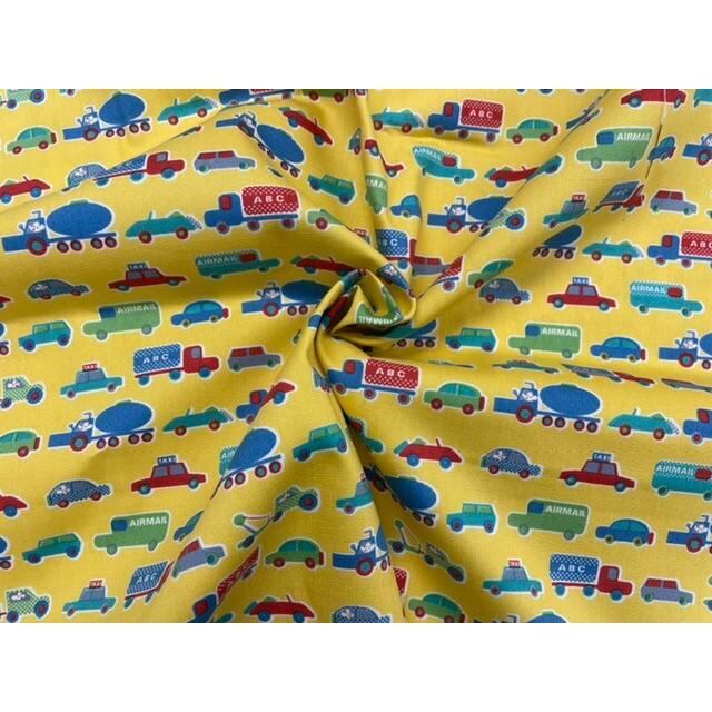生地 50cm単位 柄 イエロー 自動車 布 オックス生地 普通厚 プリント